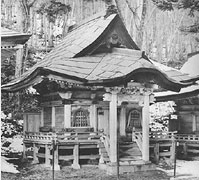 | 現在の建物は宝永6年(1709)の建立で栩葺、明和7年(1770)茅葺、幕末期にこけら葺、昭和期に土居葺下地の鉄板葺へ変更、27年には軒支柱の取替え、礎石をコンクリートで根巻きするなどの大規模な修理がなされてきました。今回の修理では五堂とも軒支柱を復旧整備し、向拝の切除された足元を復するとともに、階段最下段のコンクリートを木階に復し、側廻りの腰壁板も復しました。屋根鉄板葺については当初の栩葺に復し、棟・鬼板を整え、これに伴って正面破風・妻飾を旧規に復して形式を整えました。また、赤神権現堂は格天井を竿縁天井に、三の宮堂の天井廻縁を撤去。現地には車両搬入路がないため、参道途中の空き地から現地まで作業用モノレールを建設し、資材の上げ降ろしに使用しました。 |